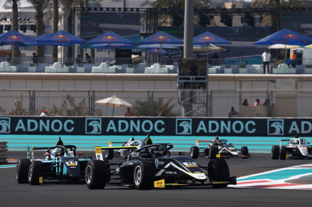The Yas Marina circuit would also play host to the opening round of the Formula Regional Middle Eastern Championship, a step up from F4. 2023 runner up and Formula 3 race winner Taylor Barnard would line up on pole position for the opening race. Barnard made a clean start from pole position and led comfortably throughout, taking the flag 4.6 seconds ahead of the R-ace GP duo of Tuukka Taponen and Martinius Stenshorne.