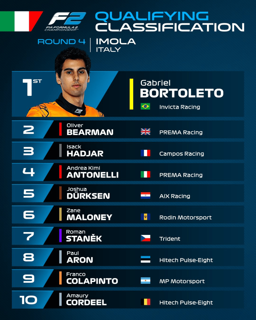 Current F3 champion and McLaren junior driver Gabriel Bortoleto grabbed pole for this weekends F2 feature race, wearing a helmet dedicated to fellow Brazilian driver Ayrton Senna, who lost his life at this circuit 30 years ago.