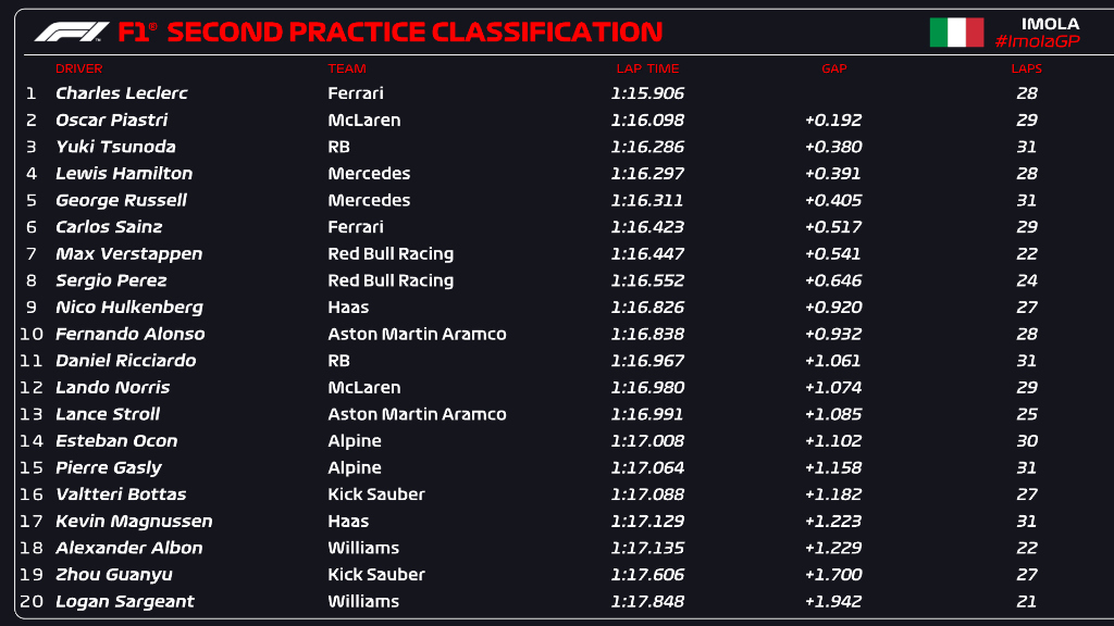 But the surprise of the session was Yuki Tsunoda who finished P3 in his RB, ahead of both Redbulls.