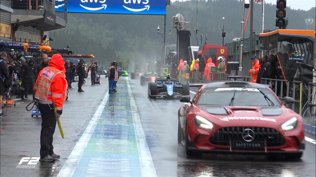 As the rain intensified the safety car stayed out after Marti’s car had been cleared, with the red flag eventually coming out on lap 7.