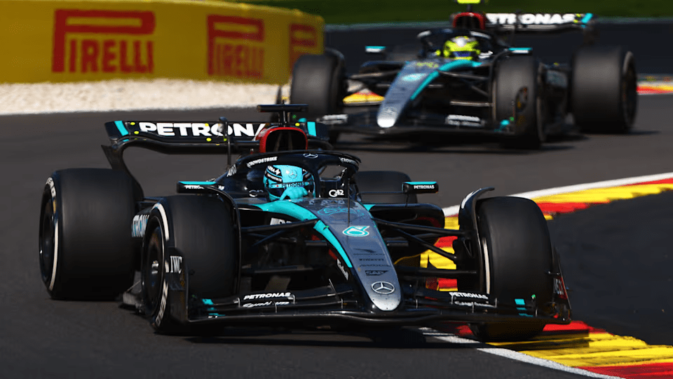 A few laps later and Hamilton was now within DRS range of his teammate, but couldn’t find a way passed despite having a tyre advantage. Surprisingly, Russel still had enough grip from his 30 lap old tyres to stay ahead of Hamilton. But with Piastry now on the scene, could Russel hold on against the odds and take a brilliant victory?