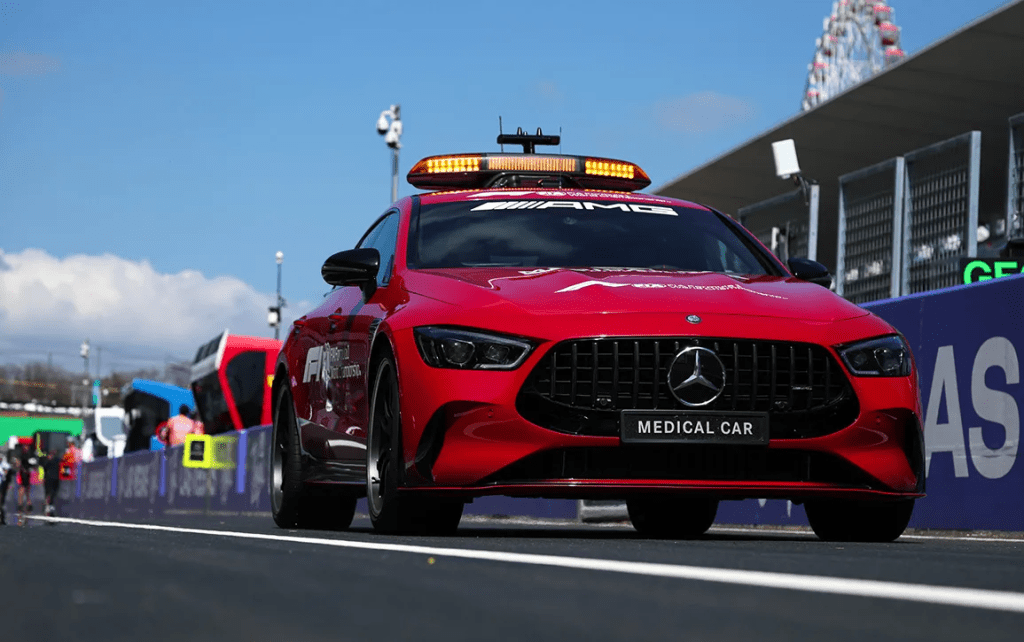 Bearman’s Haas bit the barrier at high speed, but the driver was a out quickly albeit a little winded. He was checked and released from the medical centre shortly afterwards with no major injuries.